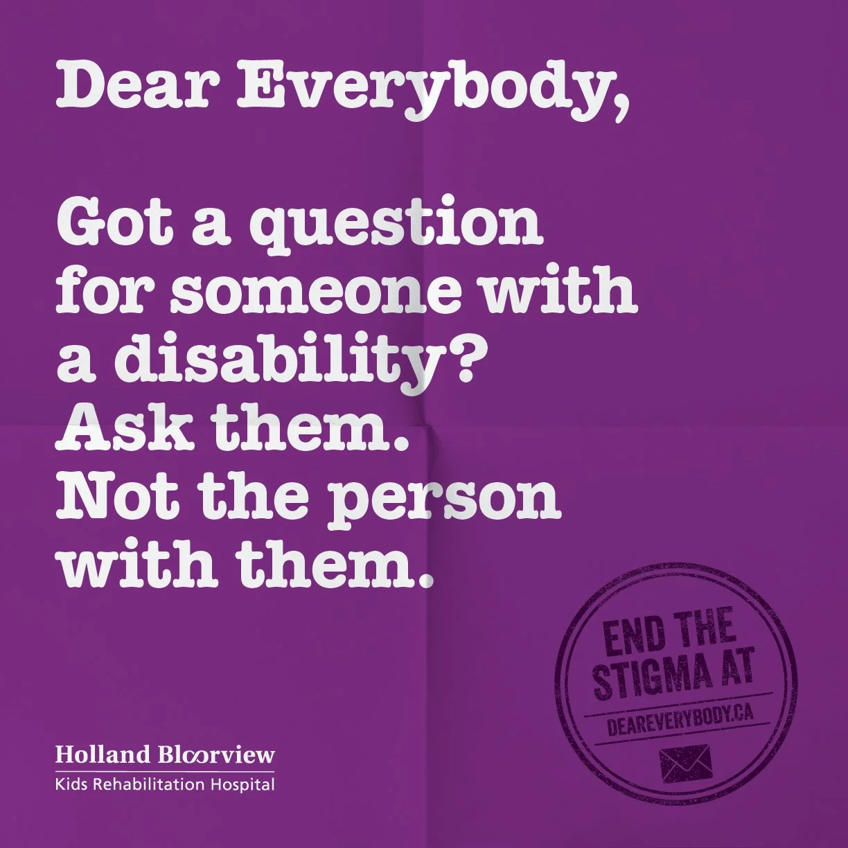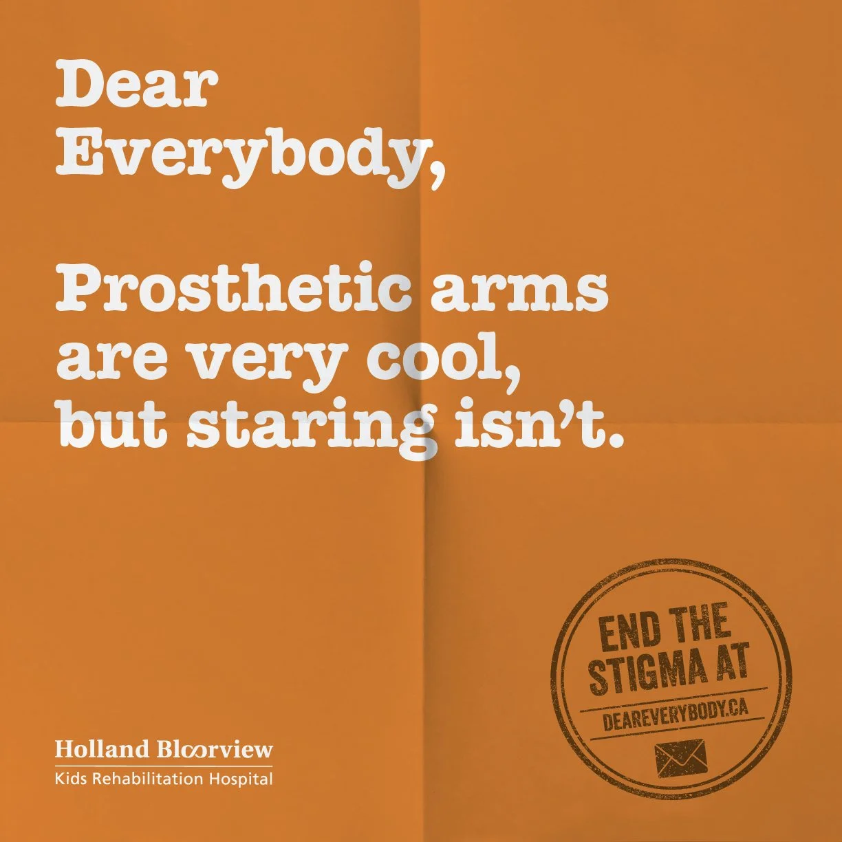 The brief wasn’t healthcare – it was stigma: the quiet assumptions, the awkwardness, the ways disability is misunderstood or ignored. We started by listening to the kids, youth, and families at the center. Their insights became a letter addressed to everybody – written to take a little stigma out of the world. Direct. Sometimes uncomfortable. Often funny. Always human.