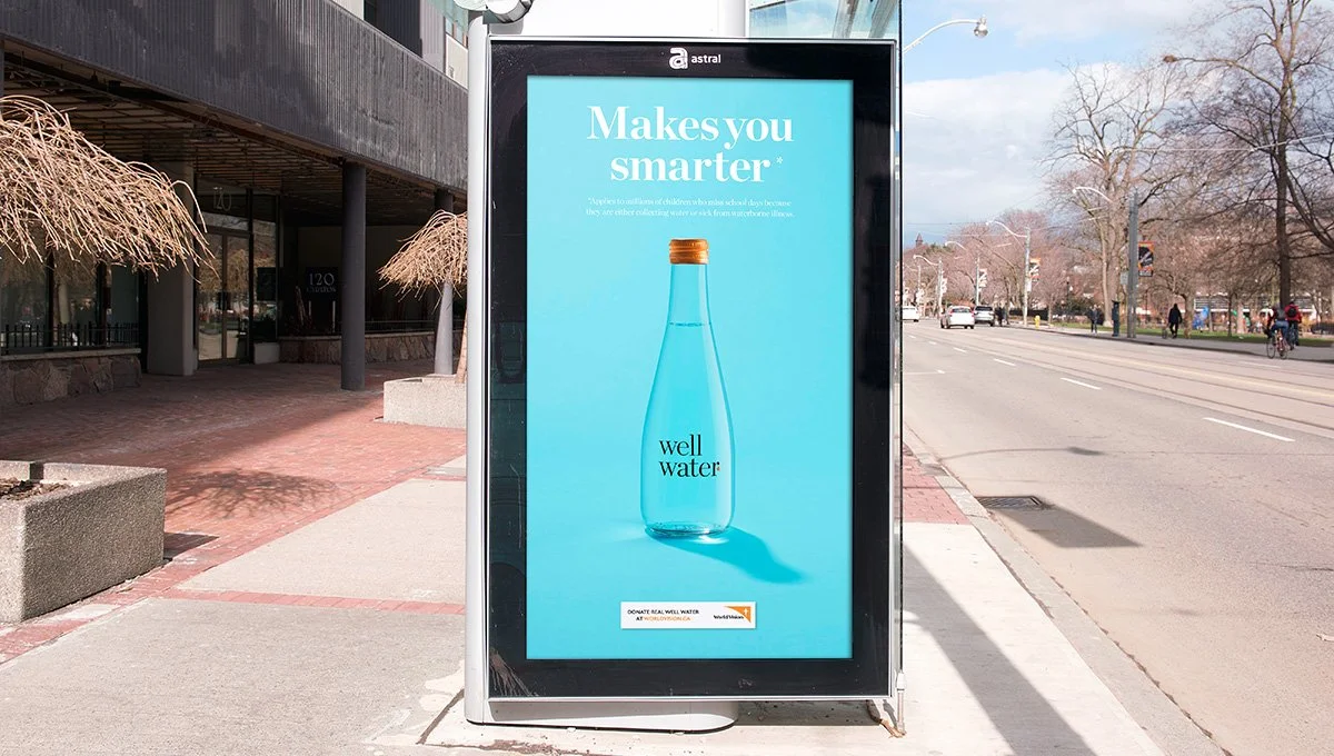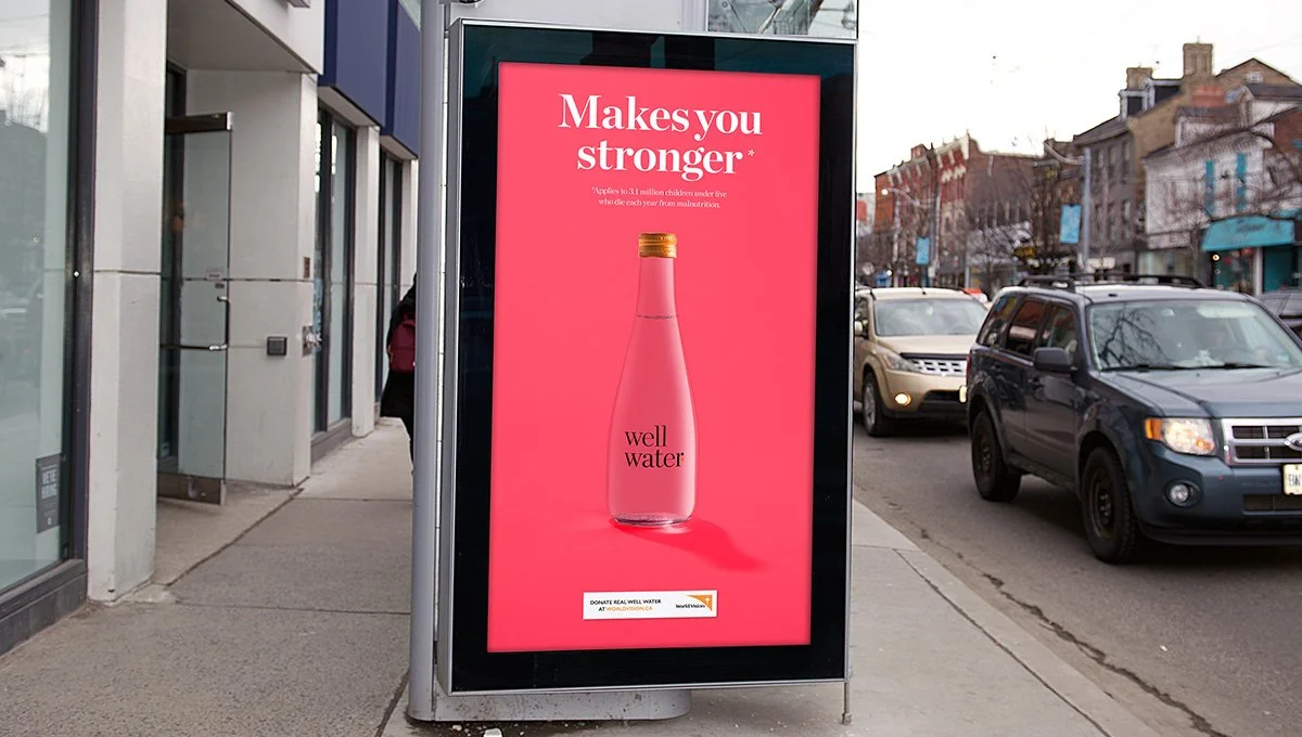 We marketed it as a "performance drink" that promised to make people stronger, smarter, and more productive – which is exactly what clean water does for the 663 million people who lack access. We treated the launch like a real brand rollout: teaser ads, a national TV spot, and bold digital billboards that made our claims impossible to ignore. Sampling events and influencer kits brought the "product" into the real world, with every touchpoint driving to a re-skinned World Vision site where people could donate to actual water projects.